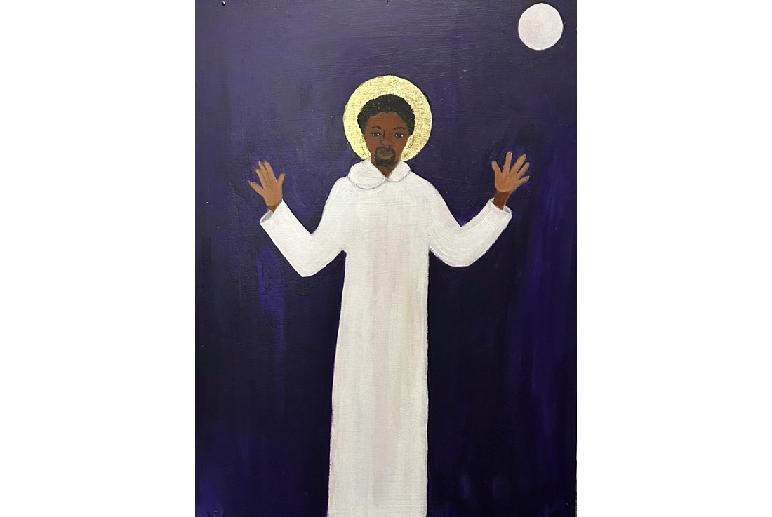 Hands up you’re under arrest Medium Acrylic on wood With gold leaf Dimensions 18 x 24 in. category God date January 1, 2025